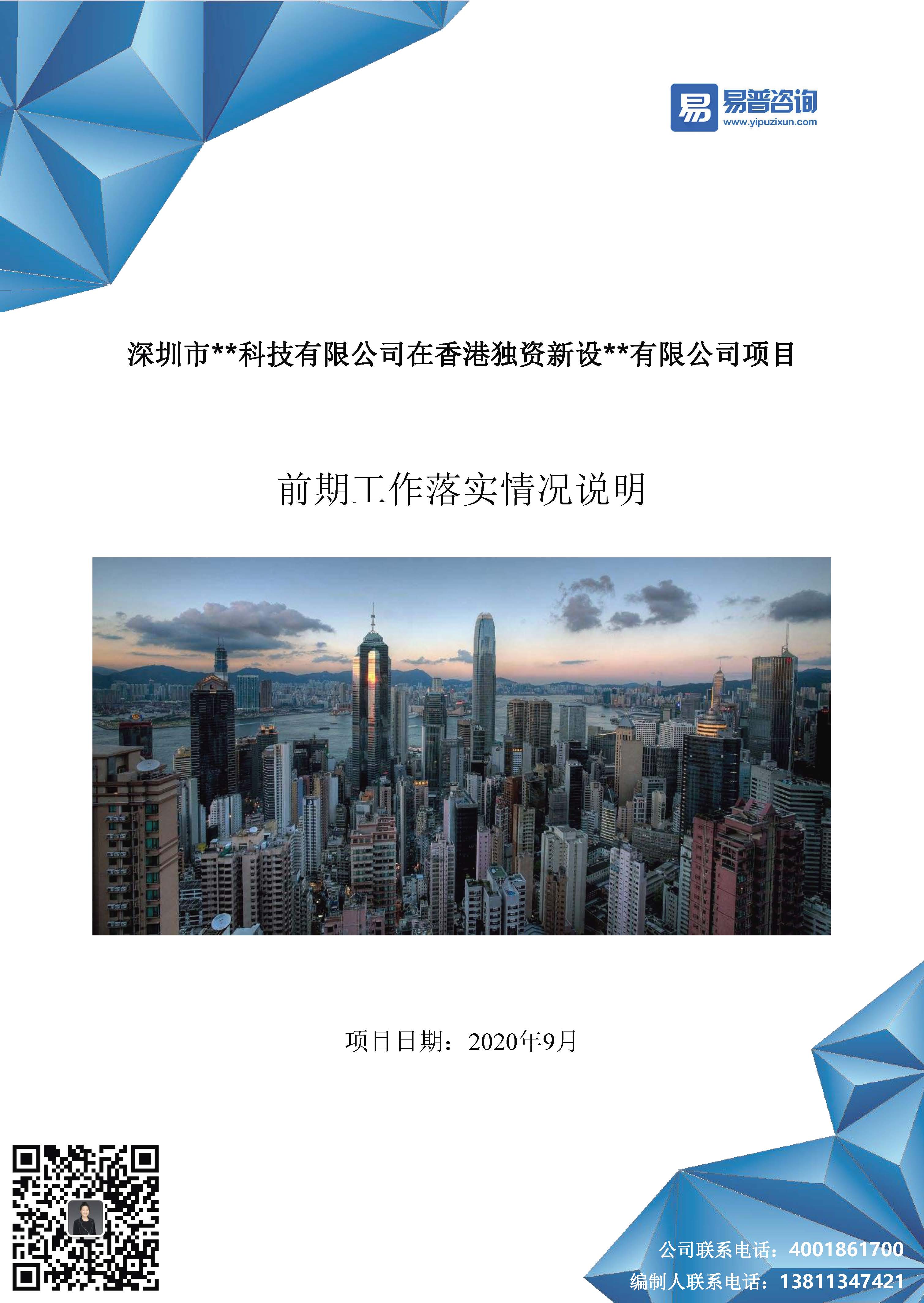 易普咨询-深圳市某科技有限公司在香港投资新设某公司项目-前期工作落实情况说明报告案例