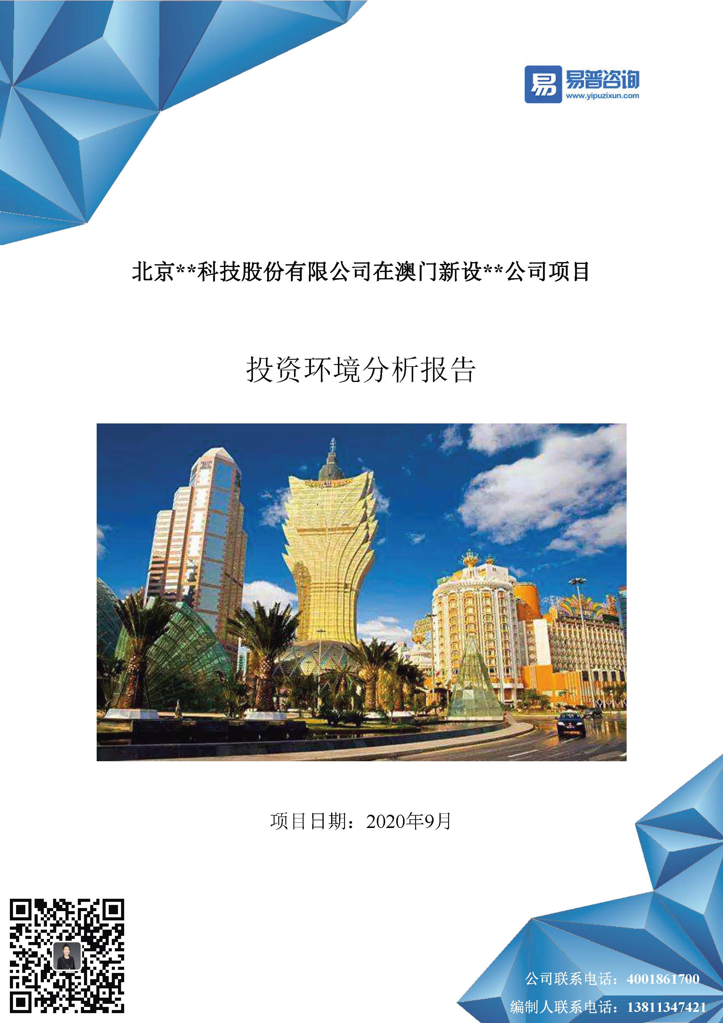 易普咨询-北京某科技股份有限公司在澳门新设**公司项目投资环境分析报告案例