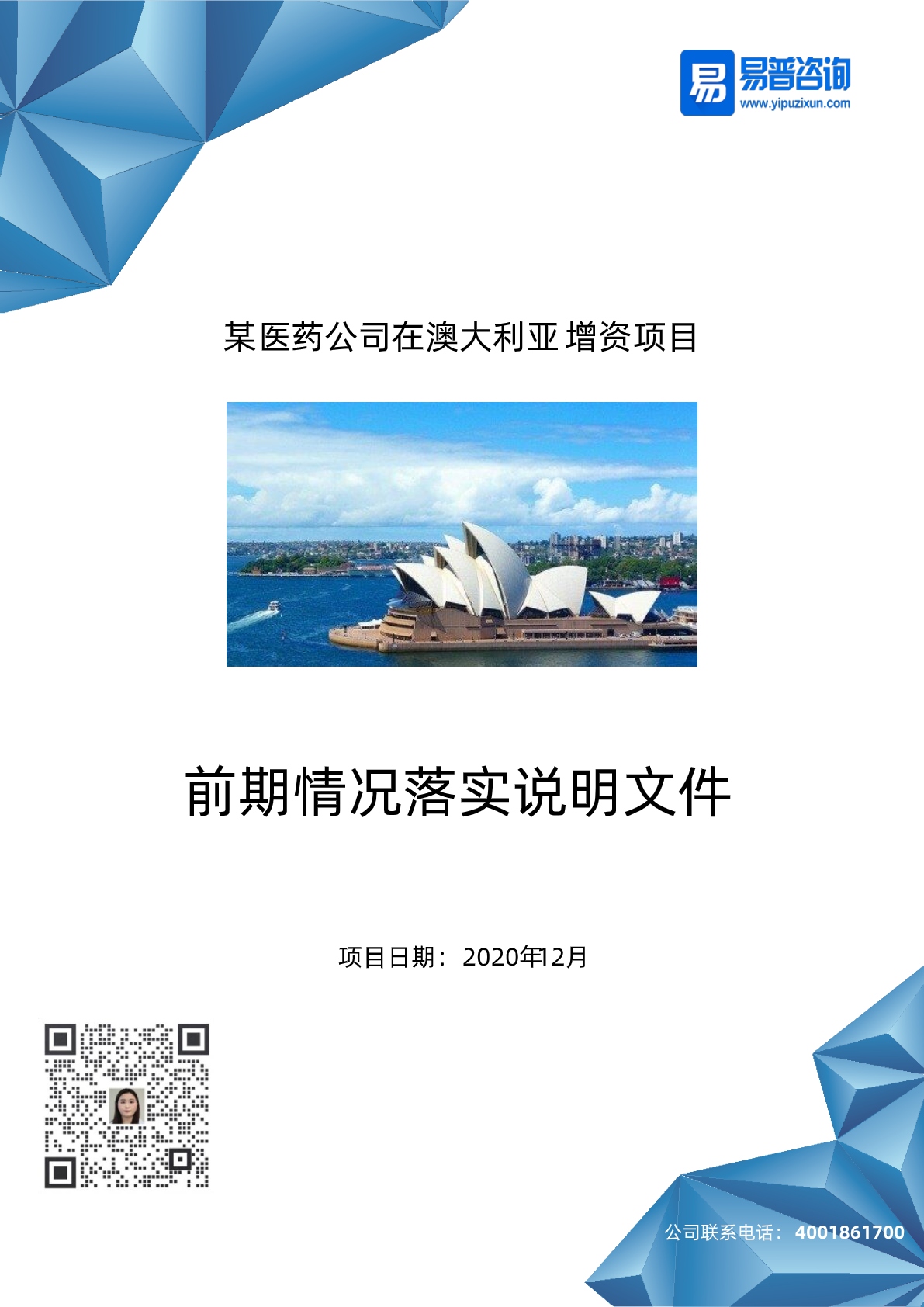 易普咨询-广州某医药公司在澳大利亚投资项目前期工作落实情况说明案例
