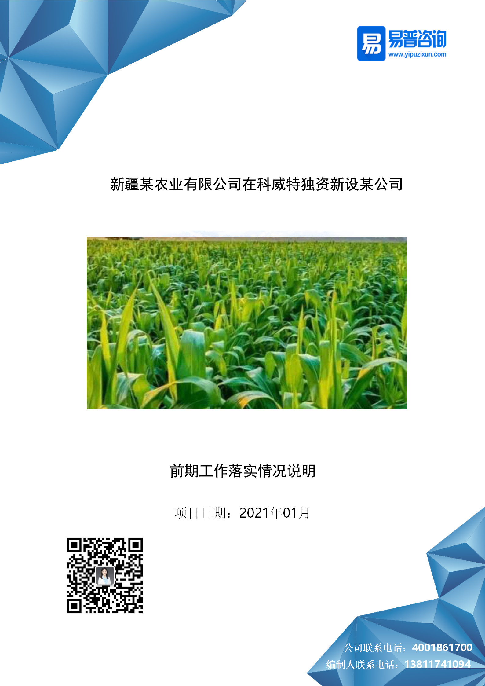 易普咨询-新疆某农业有限公司在科威特独资新设某公司前期工作落实情况说明案例