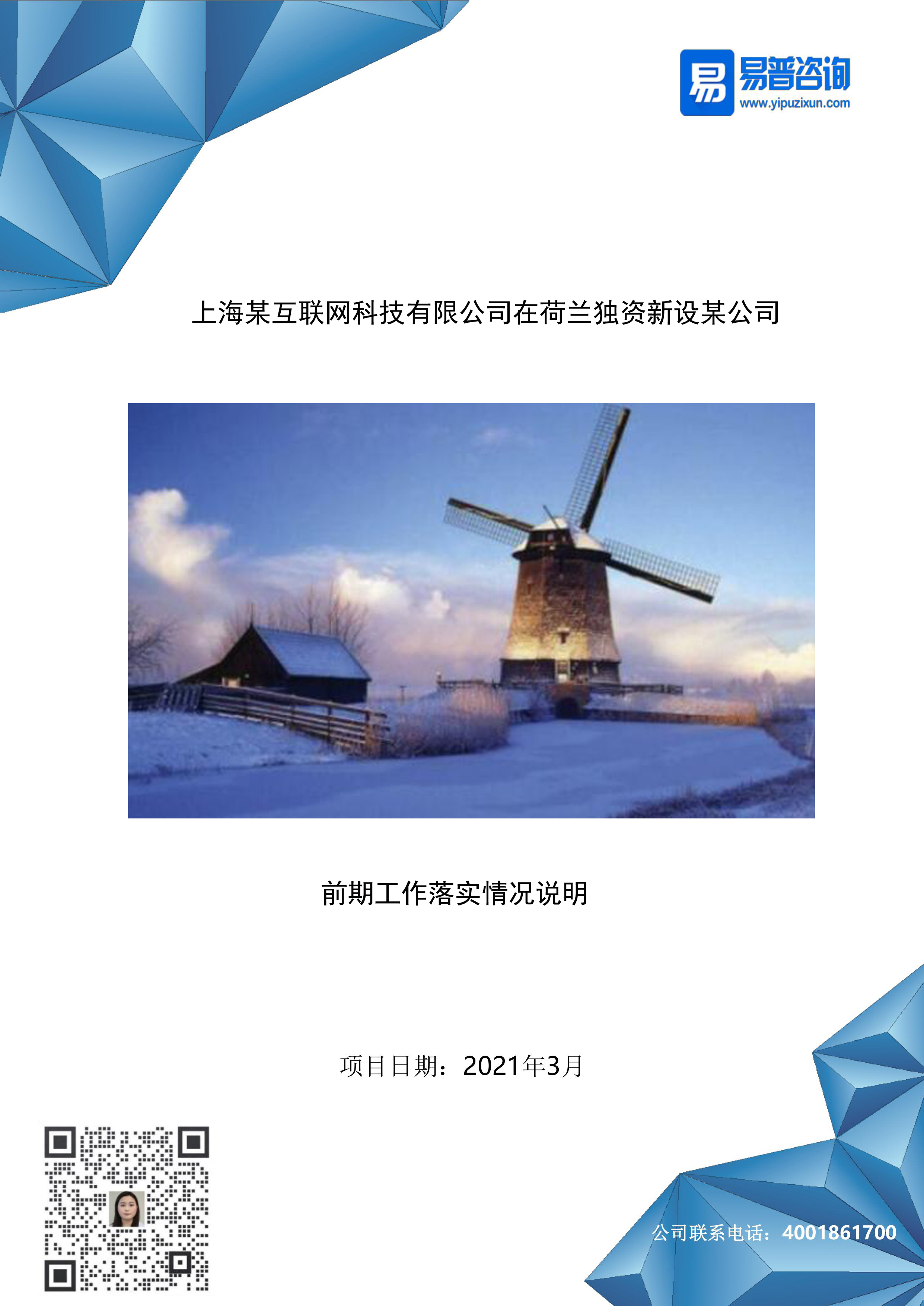 易普咨询-上海某互联网科技有限公司在荷兰独资新设某公司前期工作落实情况说明
