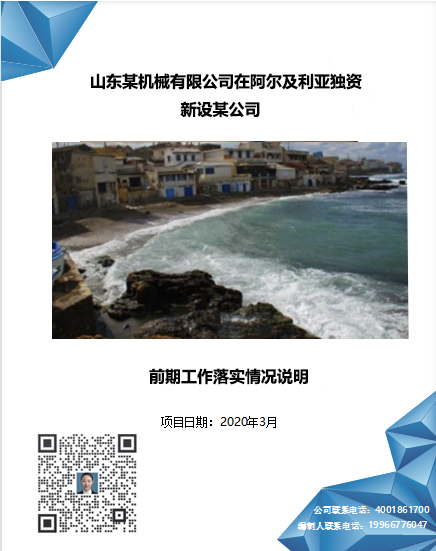 易普咨询-山东某机械有限公司在阿尔及利亚独资新设某公司前期工作落实情况说明案例