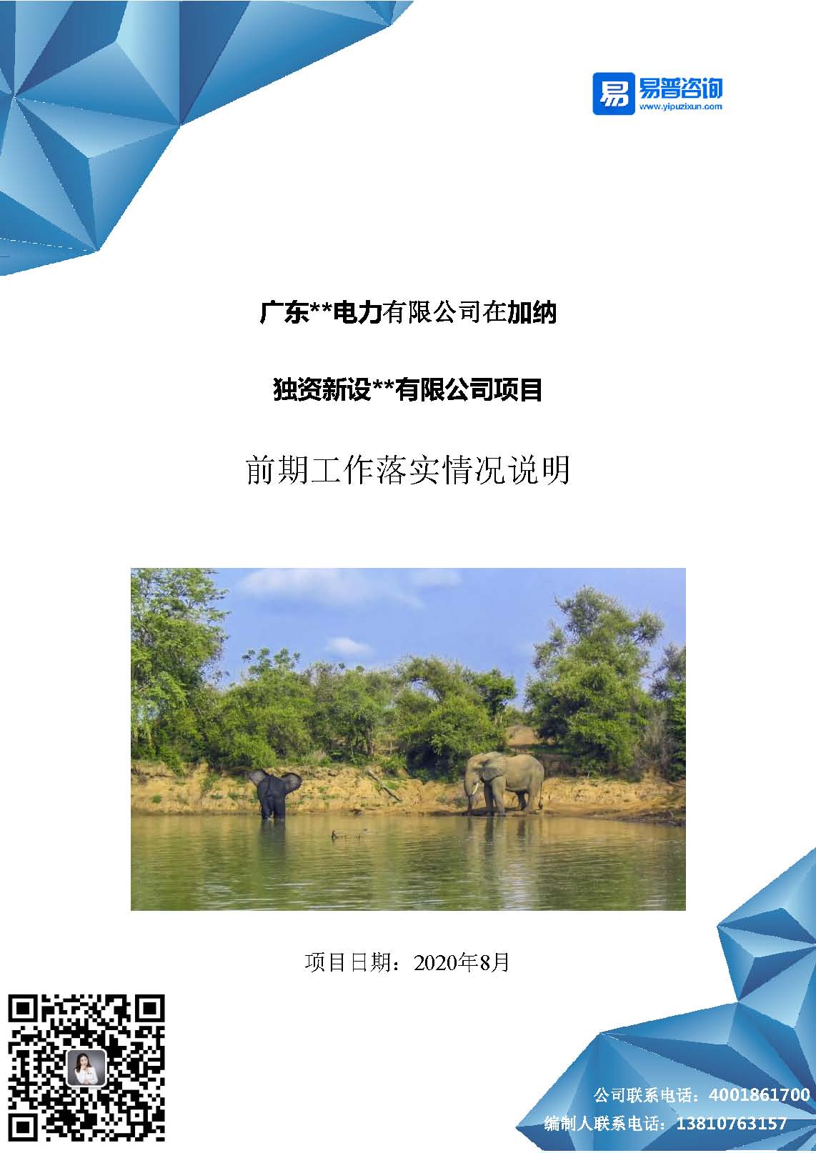 广东某电力有限公司在加纳独资新设某公司前期工作落实情况说明
