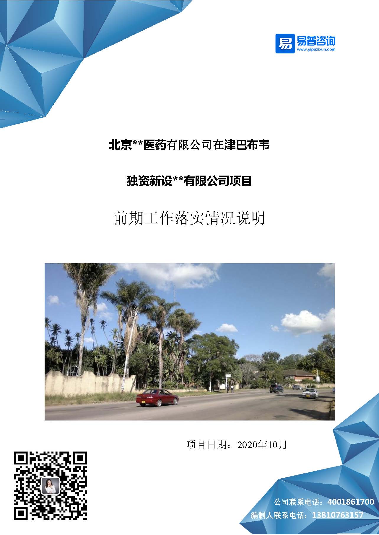 易普咨询-北京某医药有限公司在津巴布韦独资新设某公司-前期工作落实情况说明