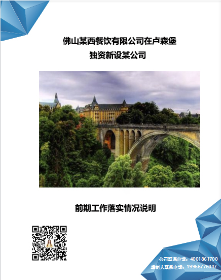 易普咨询-佛山某西餐饮有限公司在卢森堡独资新设某公司前期工作落实情况说明案例
