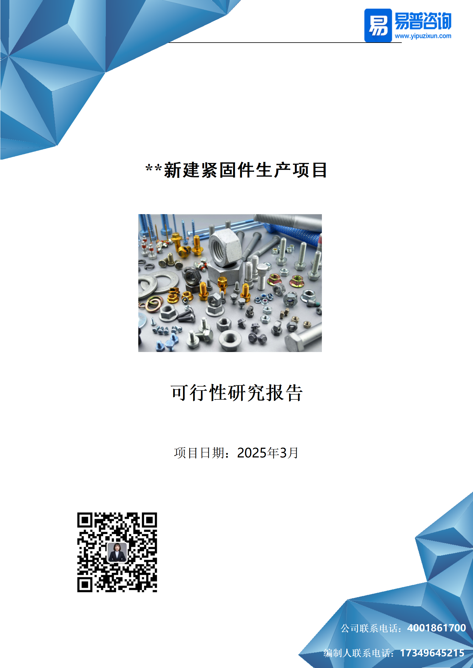易普咨询-某新建紧固件生产项目可行性报告案例