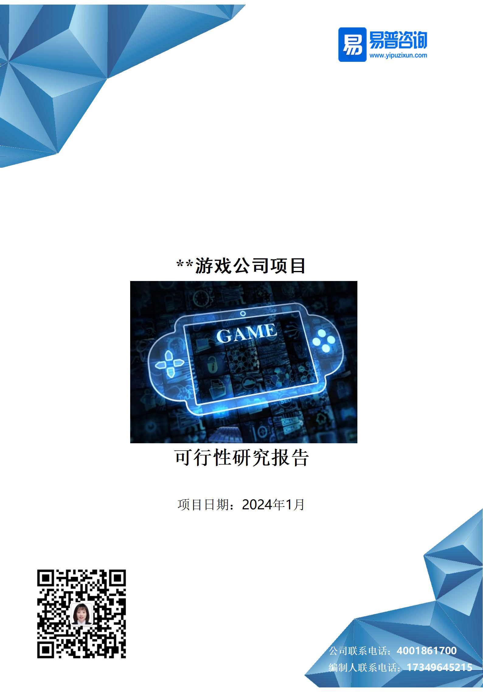 易普咨询-某关于成立游戏公司的可行性报告案例